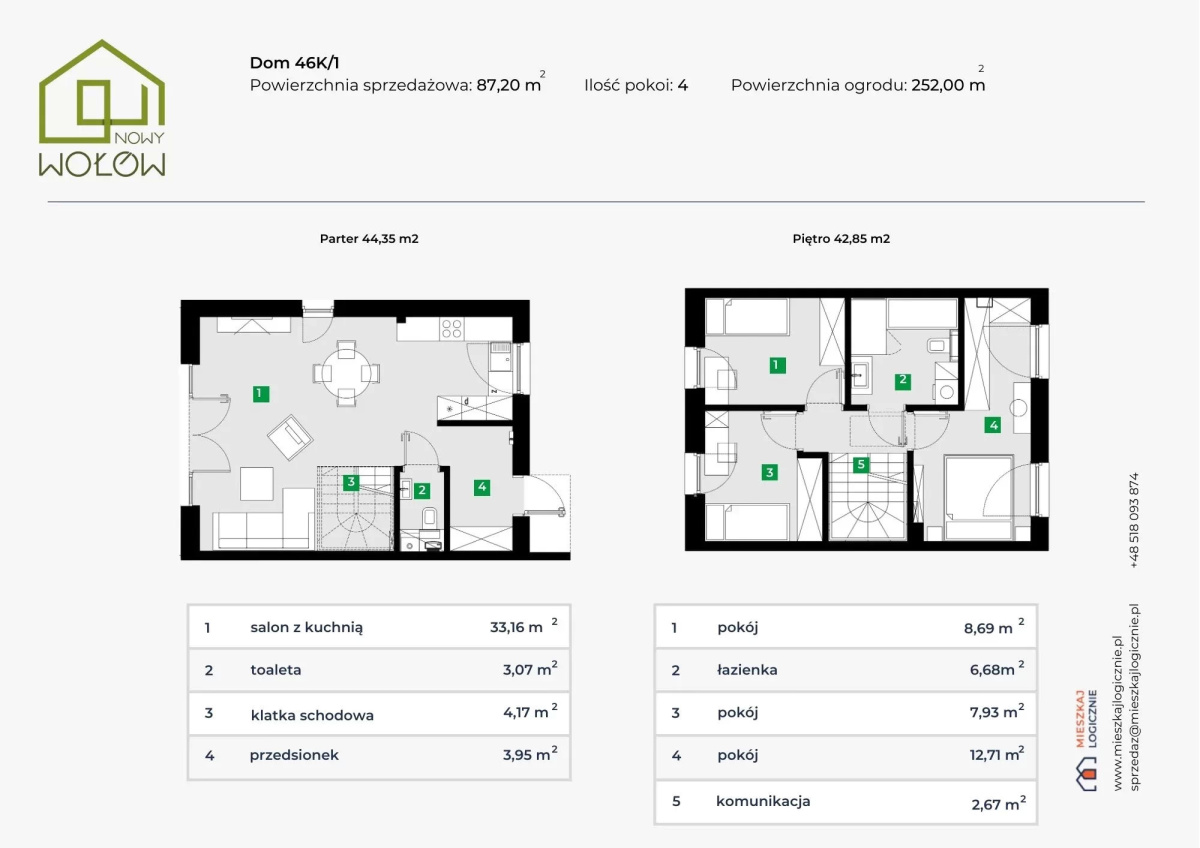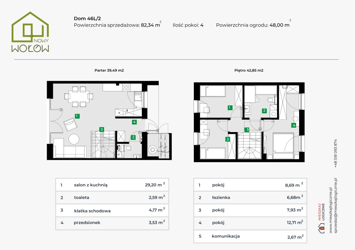 Do sprzedaży 12 mieszkań-segmentów w zabudowie szeregowej (II-gi etap inwestycji - Nowy Wołów II), w stanie deweloperskim, każdy parterowy z użytkowym poddaszem, o pow. użytkowej 87,20 m2 (6 segmentów) + 252m2 ogrodu oraz 82,34 m2 (6 segmentów) + 48m2 ogrodu. Parter każdego segmentu obejmuje : przedsionek, klatkę schodową, toaletę oraz salon połączony z kuchnią, Domy położone na obrzeżach Wołowa, na osiedlu "Nowy Wołów II", ok.45 km od Wrocławia. w spokojnej okolicy, w otoczeniu innej zabudowy jednorodzinnej. Na załączonych zdjęciach do oferty pokazano usytuowanie wolnych jeszcze budynków, rzuty kondygnacji poszczególnych segmentów, cenę sprzedaży danego domu oraz powierzchnię działki i standard wykończenia. Cena sprzedaży uzależniona jest od powierzchni użytkowej danego segmentu oraz przynależnej do niego działki, jaka będzie wydzielona. Dodatkowo każdy segment będzie miał przy swoim budynku małą wiatę na rowery. Osiedle będzie zamknięte. Media miejskie, jak woda, kanalizacja, energia elektryczna, światłowód. Zaś źródłem ciepła będzie pompa ciepła. Zapraszamy na prezentację i do rozmów.