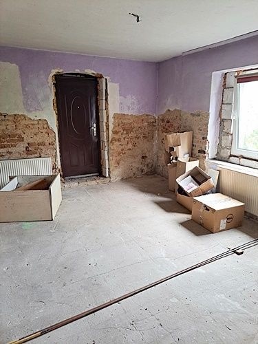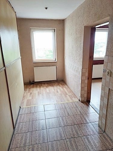Do sprzedaży duże, dwupoziomowe mieszkanie, o pow. użytkowej 167,28 m2 (całkowita 233,22 m2) z przeznaczeniem zamieszkania np. 2-ch rodzin (dwa osobne wejścia na parter i piętro, dwie kuchnie, dwie łazienki, dwa piece CO), położone w budynku z cegły, wybudowanym przed 1945 rokiem. W budynku jeszcze jeden lokal - lokal użytkowy, położony na parterze z drugiej strony budynku z własnym, osobnym wejściem od strony chodnika (własność Gminy). Nieruchomość położona w pobliżu Wołowa, blisko do dworca PKP. Część budynku, ze sprzedawanym lokalem, posiada własny wjazd na posesję. Parter (wejście na poziomie "0" od strony ogrodu - pow. użyt. 92,77 m2) obejmuje 3 oddzielne pokoje (jeden w trakcie kapitalnego remontu), kuchnię z wyjściem na zewnątrz, do ogrodu, duży przedpokój, łazienkę z WC (toaleta, kabina prysznicowa) oraz kotłownię. Poddasze (wejście od przodu budynku) i obejmuje hol-wiatrołap (może być wspólny dla parteru i poddasza), schody, kotłownię, przedpokój, duży pokój z dwoma pomieszczeniami gospodarczymi (typu garderoba i pokój-gabinet) z wejściem z przedpokoju oraz kuchnię i dwa przechodnie pokoje z wejściem z kuchni (w jednym kominek), a także łazienkę z WC (wanna, toaleta, pom. gosp.) i część strychową, nieużytkową (pow. 65,94 m2) z wejściem z korytarza. Stan techniczny budynku dobry, do odnowienia i modernizacji parter, ale większego remontu wymagają pomieszczenia na poddaszu wraz z częścią dachu. Stan techniczny budynku i pomieszczeń ogólnie dobry, instalacja elektryczna i CO w miedzi, okna PCV. W cenie sprzedaży przedmiotowej nieruchomości jest dodatkowo przyległa działka (budowlana) nr 197/2 o pow. 986m2, zabudowana budynkiem gospodarczym, w którym znajduje się garaż, pokój gościnny z własną łazienką oraz pom. typowo gospodarcze. Główny wjazd na działkę budowlaną jest drogą wewnętrzną od strony ulicy Kasztanowej, której udział został także wliczony w cenę sprzedaży, ale obecnie korzysta się z wjazdu poprzez działkę, na której stoi budynek mieszkalny i poprzez wjazd, który jest obecnie tak użytkowany. Media miejskie, jak woda, kanalizacja i energia elektryczna, CO własne (w obu lokalach piece na węgiel/drzewo). Zapraszamy na prezentację i do rozmów.