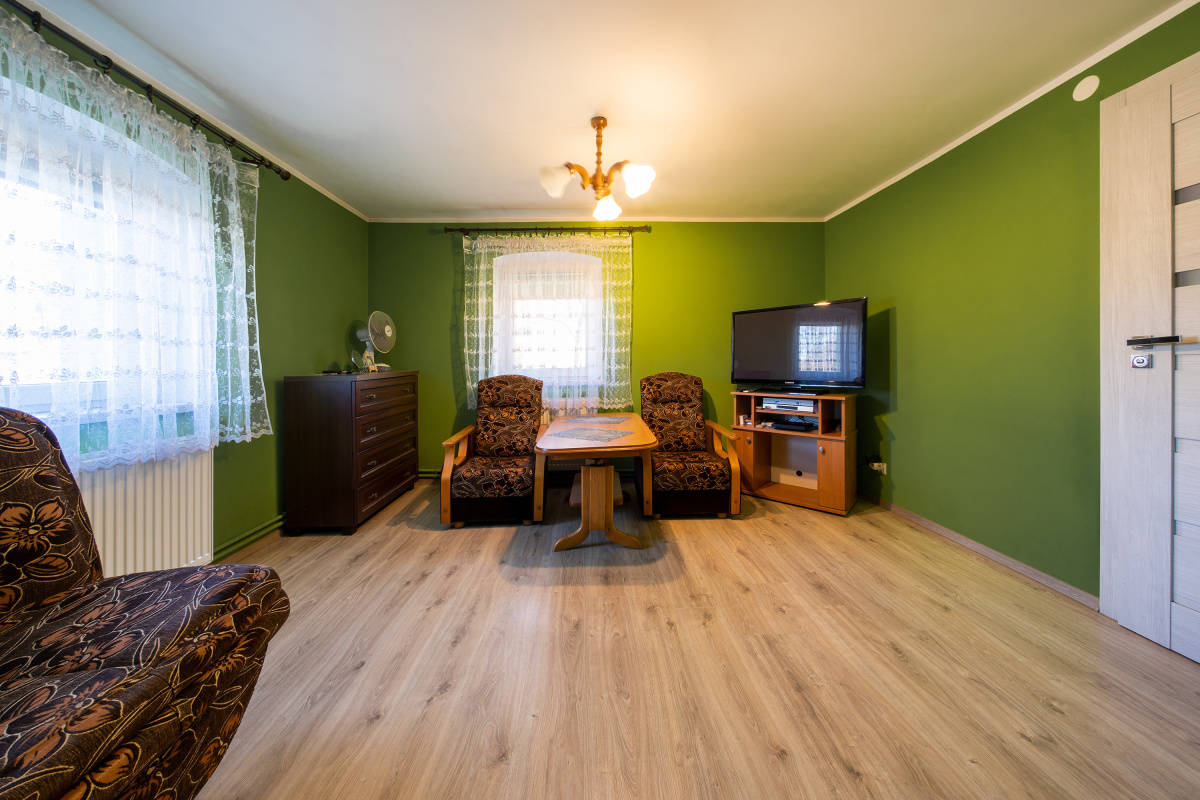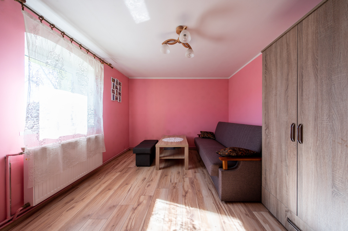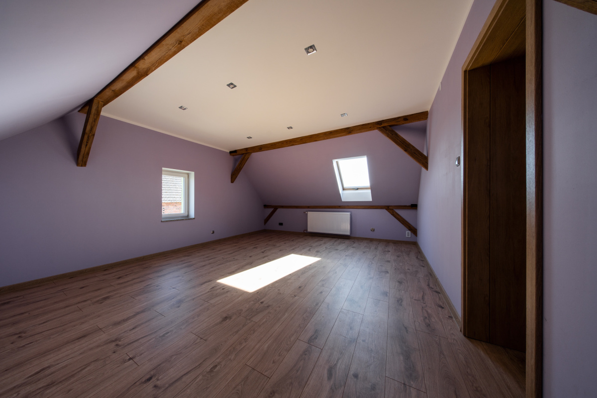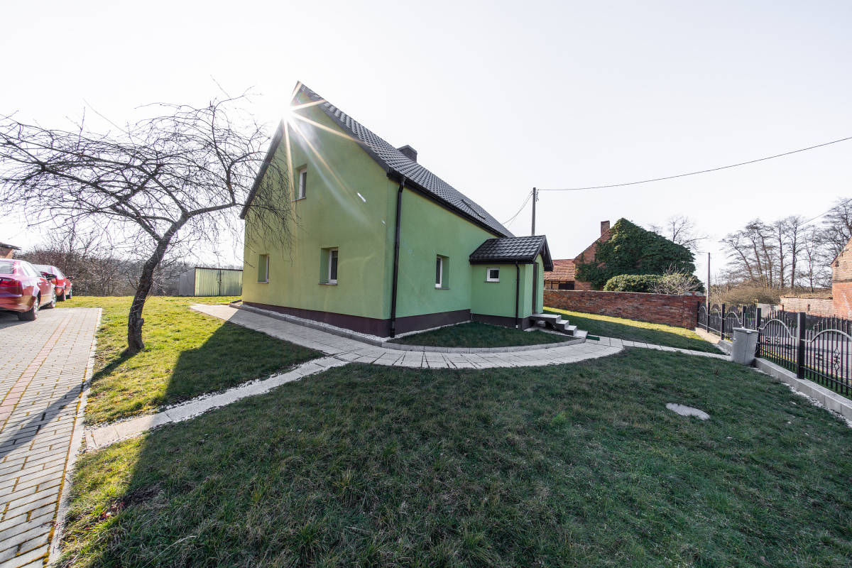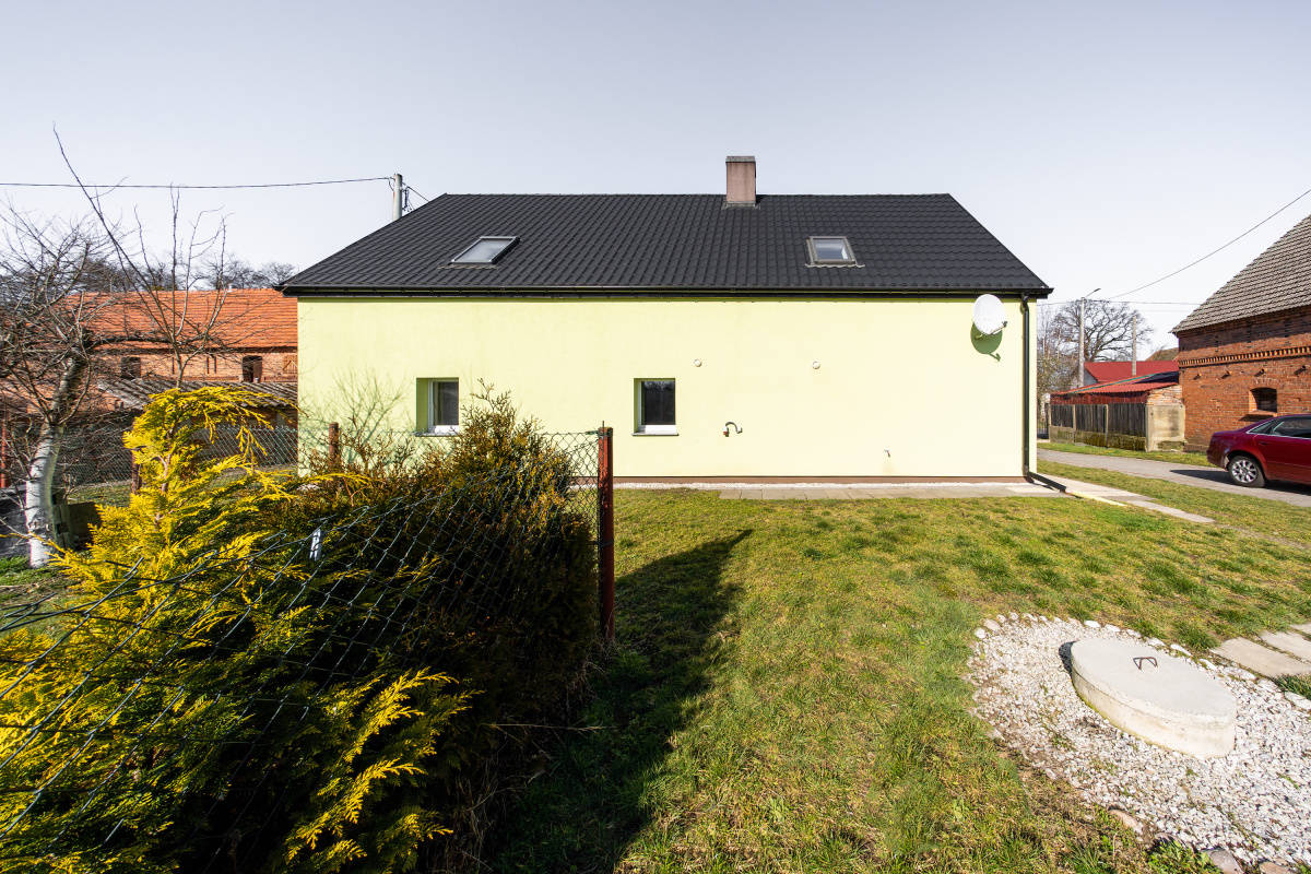 Do sprzedaży dom jednorodzinny, wolnostojący, po kapitalnym remoncie (ostatnie poddasze użytkowe w styczniu 2025r.), położony w miejscowości wiejskiej, w gminie Wołów, w pobliżu Lubiąża (ok.50km do Wrocławia). Budynek wybudowany tradycyjnie przed 1945 rokiem, z cegły, ocieplony, wyremontowany wraz z instalacjami, utrzymany w bardzo dobrym stanie technicznym, do zamieszkania, nie wymaga nakładów finansowych. Parter domu obejmuje: wiatrołap, hol-część komunikacyjną, ustawną kuchnię, 3 pokoje (w tym jeden z wejściem z kuchni) oraz dużą, przestronną łazienkę z WC (wejście do łazienki z pokoju) oraz schody na poddasze użytkowe. Poddasze obejmuje: dwa pokoje oraz część komunikacyjną, w której można umieścić aneks kuchenny (są podłączenia wody i kanalizacji) i jadalnię; pomieszczenia na poddaszu częściowo pod skosami. Dach kryty skośny, kryty dachówką. Działka w kształcie nieregularnym, ogrodzona, wjazd na posesję wykostkowany (możliwość parkowania 2-3 samochodów). Jest także postawiony garaż - blaszak. Dojazd do nieruchomości z drogi głównej, asfaltowej. Media: energia elektryczna, w tym siła (w kuchni podłączenie pod indukcję) oraz woda miejskie, kanalizacja -własne szambo (nowe), gazu brak (z butli), CO własne (piec na węgiel/ drzewo usytuowany w holu). Otoczenie i sąsiedztwo spokojne. W niedalekiej odległości lasy i tereny spacerowe. Zapraszamy na prezentację i do rozmów.