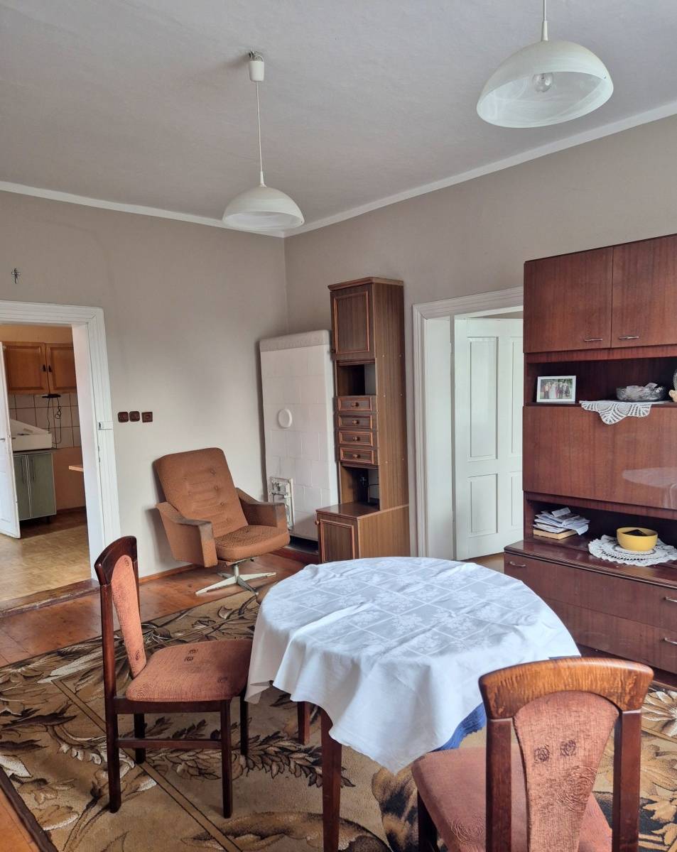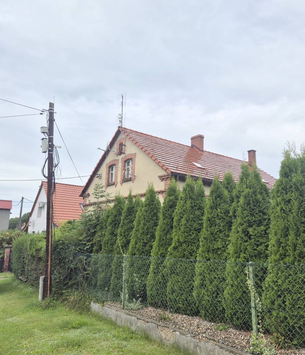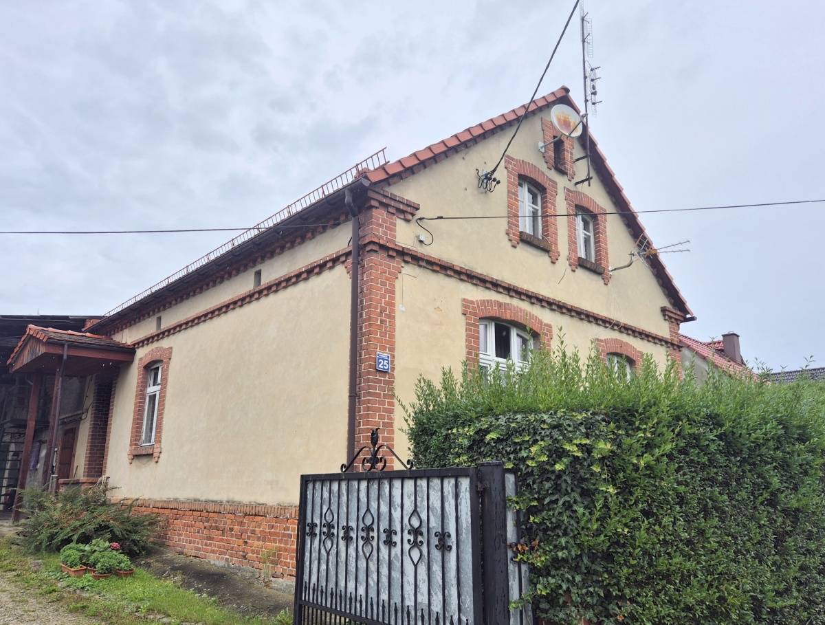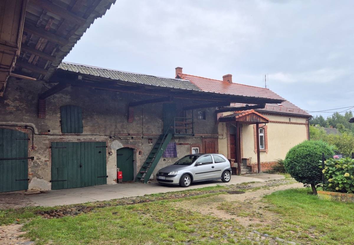 Do sprzedaży, dla osób lubiących klimat wiejski i nie tylko, dom w zabudowie zagrodowej, jednorodzinny (ok.130 m2 pow. całkowitej), parterowy, częściowo podpiwniczony, w części z użytkowym poddaszem, w zabudowie zagrodowej, położony w miejscowości wiejskiej pod Wołowem, ok.45 km od Wrocławia i 5 km do centrum miasta. Dojazd drogą asfaltową. W otoczeniu zabudowa jednorodzinna i zagrodowa oraz tereny zielone, a na końcu ulicy las. Budynek wybudowany technologią tradycyjną, murowaną, z cegły, przed 1945 rokiem. Do budynku przylega budynek gospodarczy, gdzie mieści się min. garaż. Budynki gospodarcze łączą się ze sobą w kształcie litery "L". Stan techniczny budynku mieszkalnego i budynków gospodarczych dobry. Do użytkowania, ale wymagają modernizacji i adaptacji do swoich potrzeb i obecnych standardów. W budynku mieszkalnym wymieniono 10 lat temu dach (dachówka karpiówka), część okien i podłóg oraz nowy piec CO (ekogroszek z podajnikiem). Parter domu obejmuje: korytarz, łazienkę z WC, kotłownię (przy łazience), kuchnię oraz trzy pokoje (przechodnie). Poddasze obejmuje: pokój oraz dużą przestrzeń do dalszej adaptacji wg własnych potrzeb. Media miejskie, jak woda, kanalizacja i energia elektryczna, w tym siła, gaz z butli. Na terenie posesji duże podwórko (wjazd na posesję zamykany) oraz dodatkowo studnia i budynki gospodarcze do wykorzystania na warsztaty magazyny, itp. Otoczenie i sama miejscowość spokojne. Dojazd dzieci do szkół w Wołowie autobusem szkolnym. Nieruchomość z dużym potencjałem. Możliwość dokupienia działki budowlanej, usytuowanej za zabudowaniami, w celu powiększenia posesji. Zapraszamy na prezentację i do rozmów.