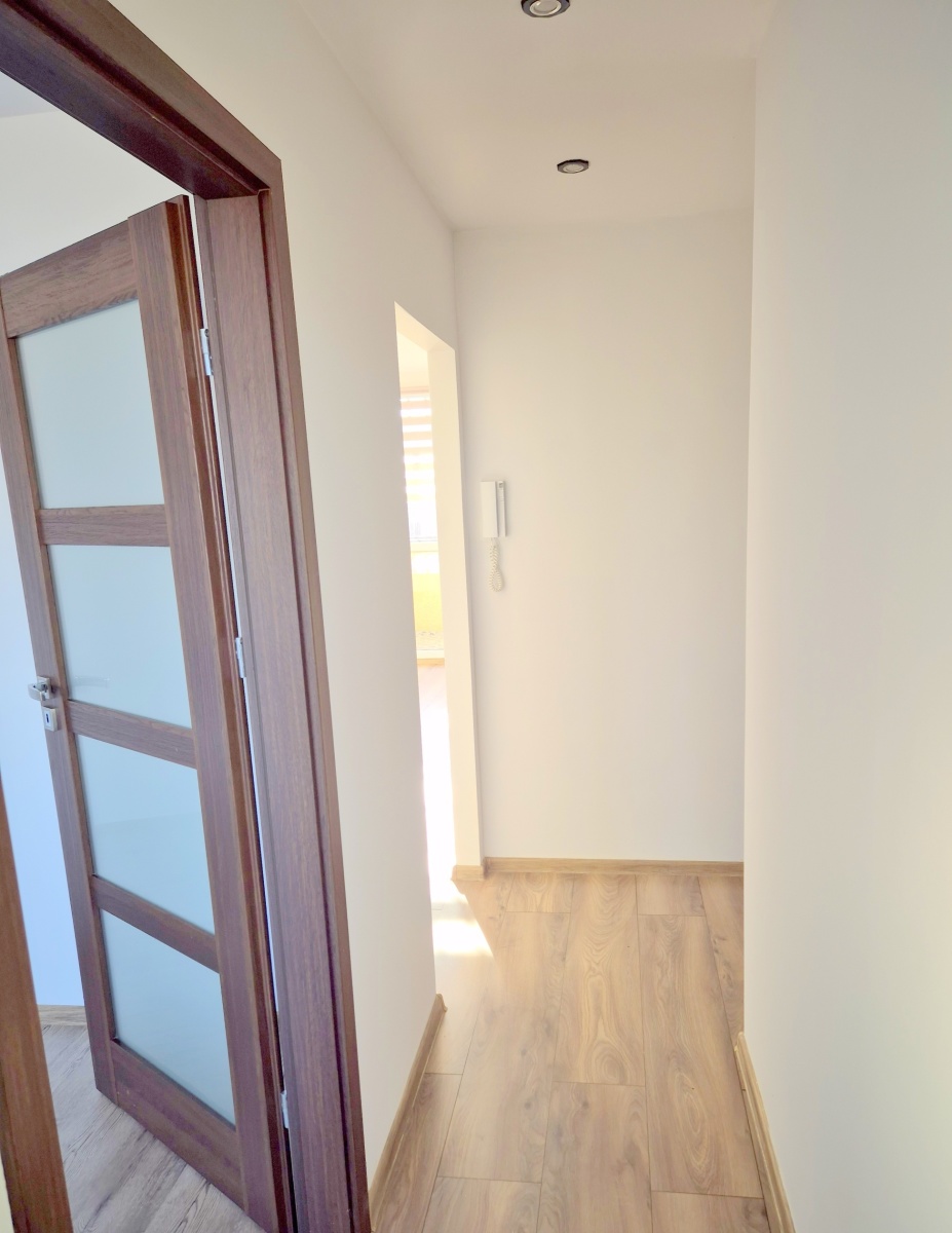 Polecamy do najmu 2 pokoje w centrum Wołowa. Mieszkanie jasne, środkowe, rozkładowe, dwustronne, ustawne, położone na IVp./IVp. w typowym bloku mieszkalno-usługowym z lat 70-tych. Budynek zadbany, klatki schodowe odnowione, zamykane - domofon. Lokal zadbany, czysty, po remoncie, naszykowany do objęcia najmu od zaraz. Mieszkanie bez umeblowania pokoi (we własnym zakresie Najemcy) z pełnym wyposażeniem kuchni (meble na wymiar, płyta gazowa, piekarnik, kuchenka mikrofalowa wbudowana, zmywarka, junkers, zlewozmywak z baterią, lodówka, okap) i łazienki z WC (wanna, toaleta wisząca, pralka, umywalka z szafką, baterie). Do lokalu przynależy piwnica, która również zostanie udostępniona Najemcy. Wejście do budynku od strony podwórka, gdzie znajduje się ogólnodostępny parking dla mieszkańców oraz zamykany plac zabaw - wjazd na teren zamykany, szlaban (mieszkańcy mają wjazd wolny- każdy ma pilota). W pobliżu pełne zaplecze handlowo-usługowe, oświatowo-zdrowotne i sportowo-rekreacyjne. Media miejskie, jak woda (ciepła woda junkers), ścieki, gaz, energia elektryczna i CO oraz TV kablowa. Najemca oprócz czynszu najmu na rzecz Wynajmującego ponosić będzie także opłaty na rzecz SM, które kształtują się obecnie w wysokości ok.720,- zł./m-c/2 os (w czynsz wliczona jest min. opłata ryczałtowa za wodę ze ściekami, śmieci, CO, koszty zarządu, fundusz remontowy, tv kablowa, itp.) oraz za zużycie gazu i energii elektr. wg zużycia i odczytów liczników. Zapraszamy na prezentację i rozmów.